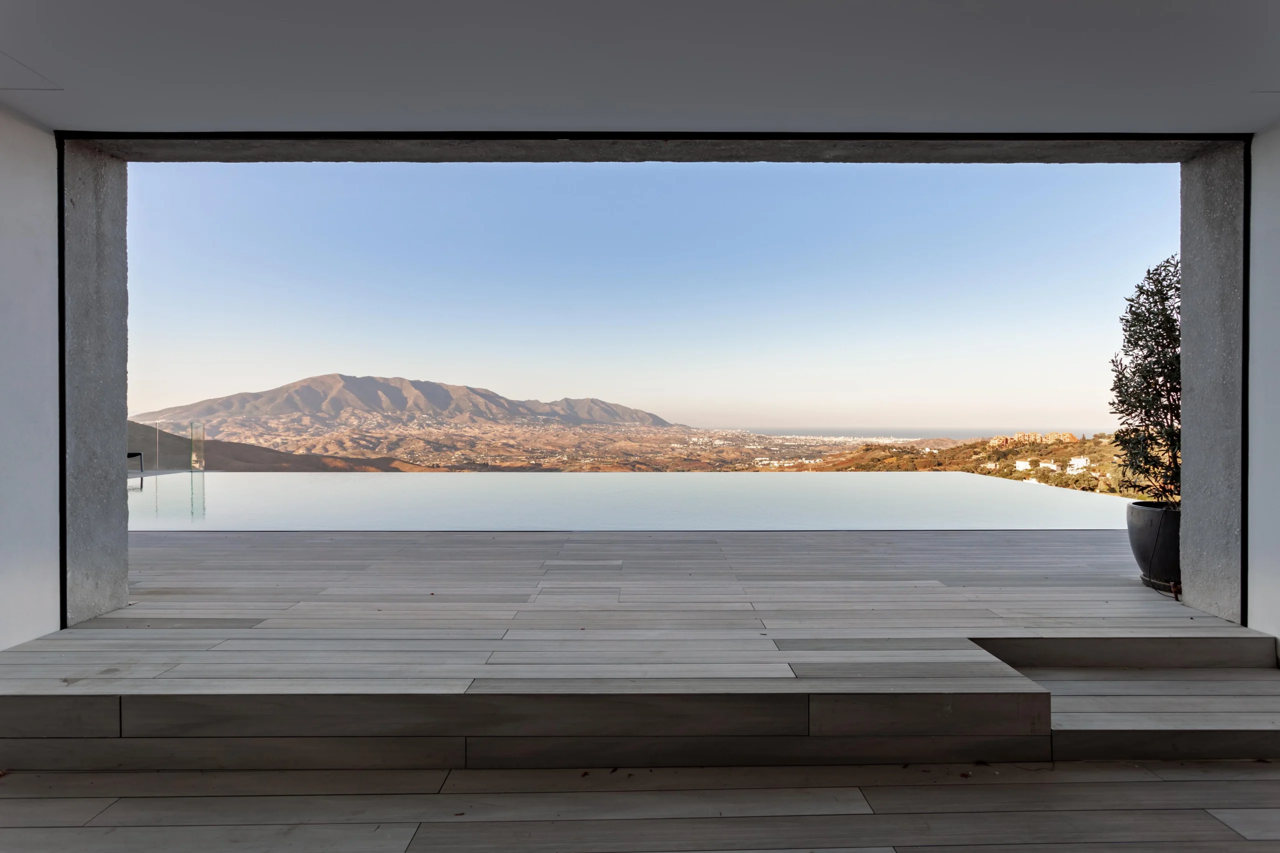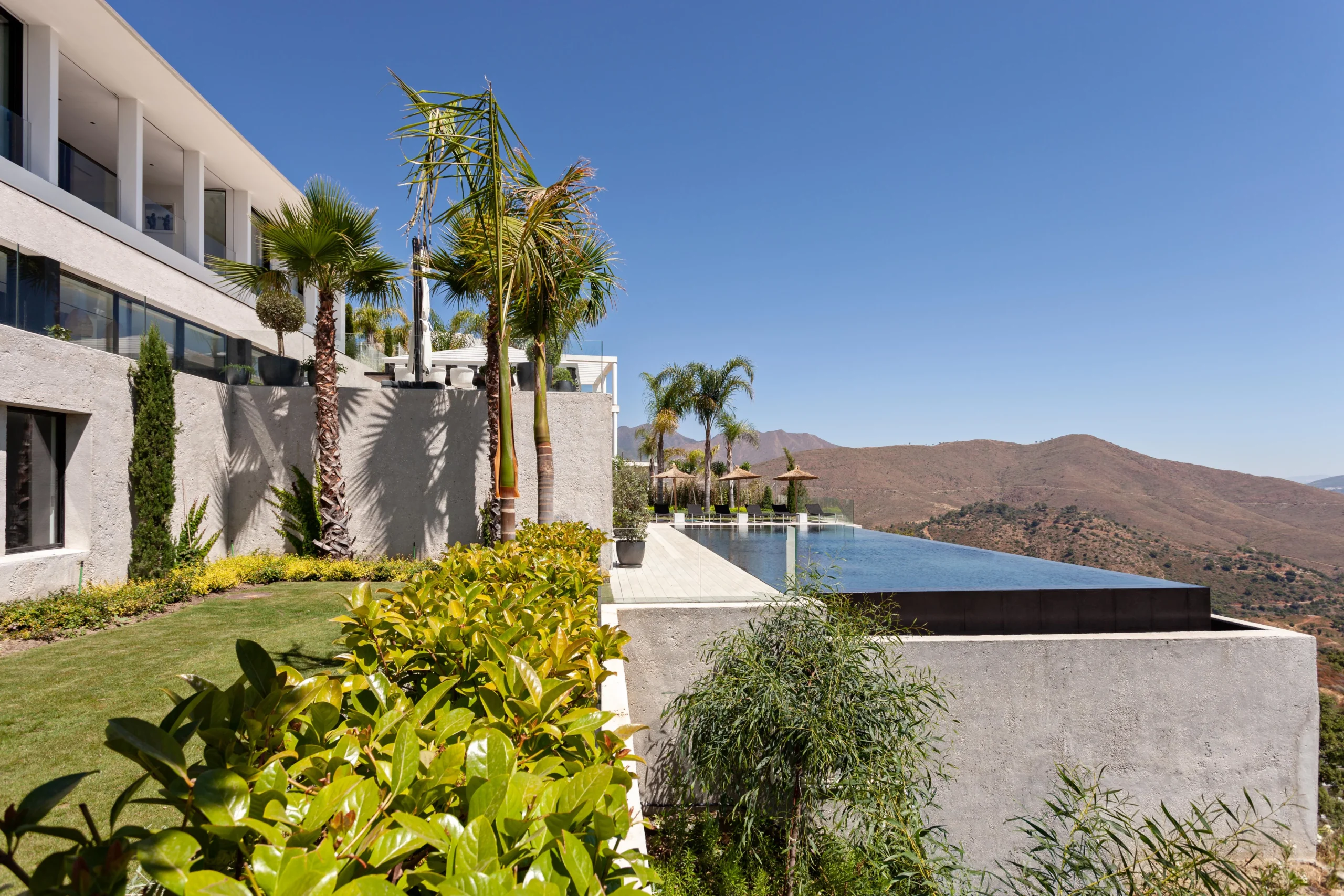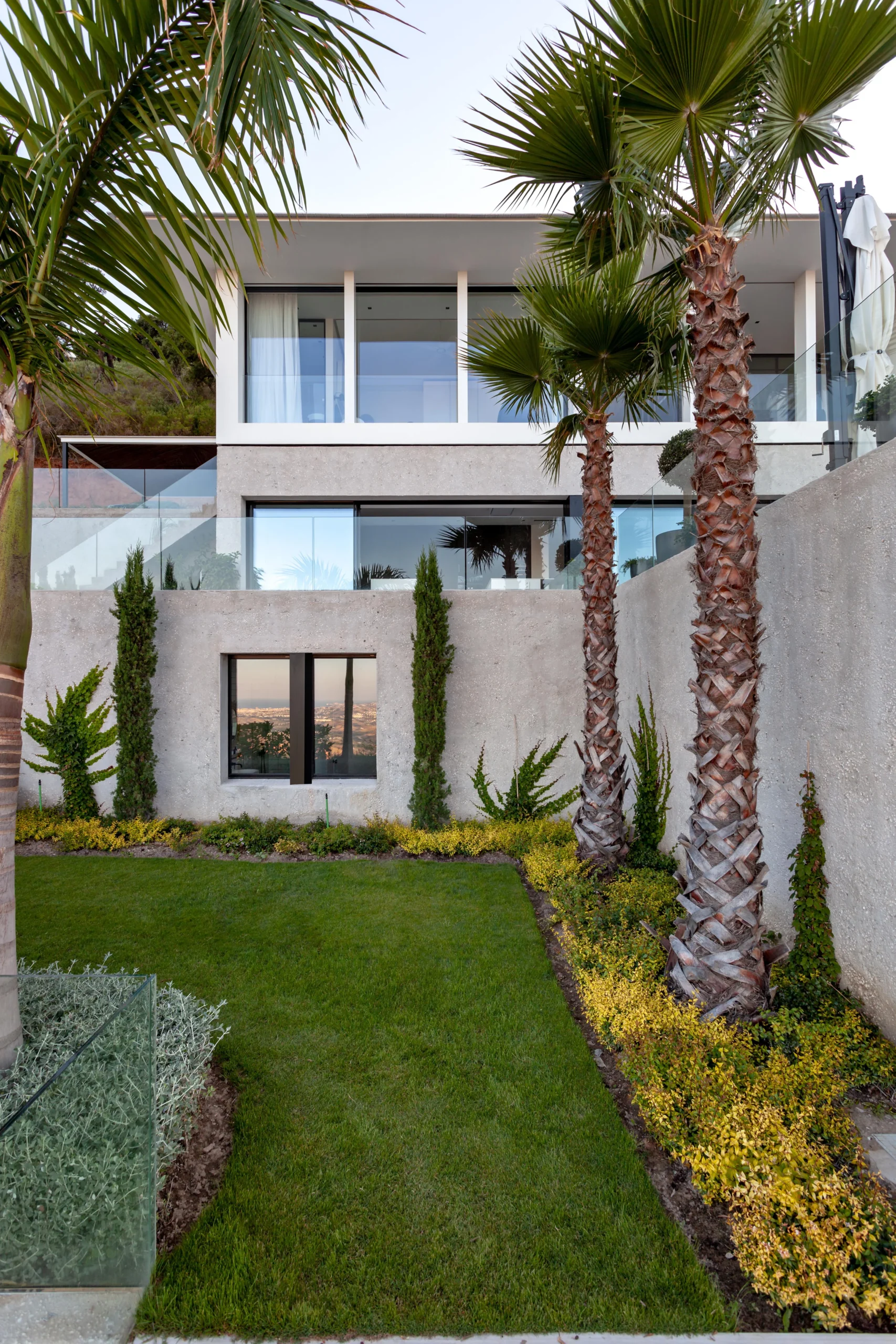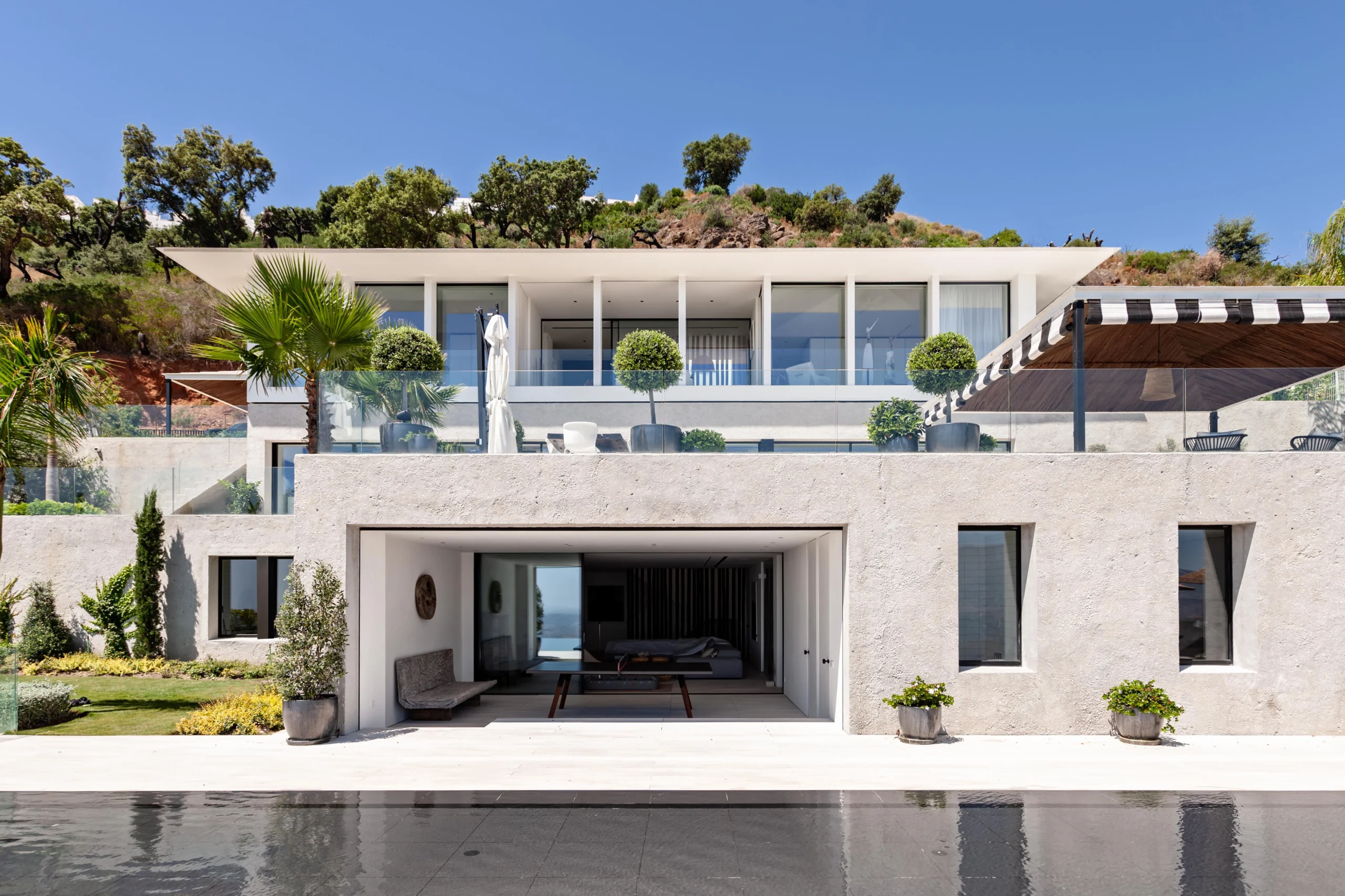 Marbella house is a residential development in the hills to the northwest of Marbella. Our proposal for Marbella house had to follow the steep incline of the land. The result is an upside down and back to front house: the main bedrooms are on the entrance floor with the large living and entertaining spaces on the floors below; and the front of the house is a mute blank wall, while the back of the house is a series of full width glass windows and doors overlooking the landscape.