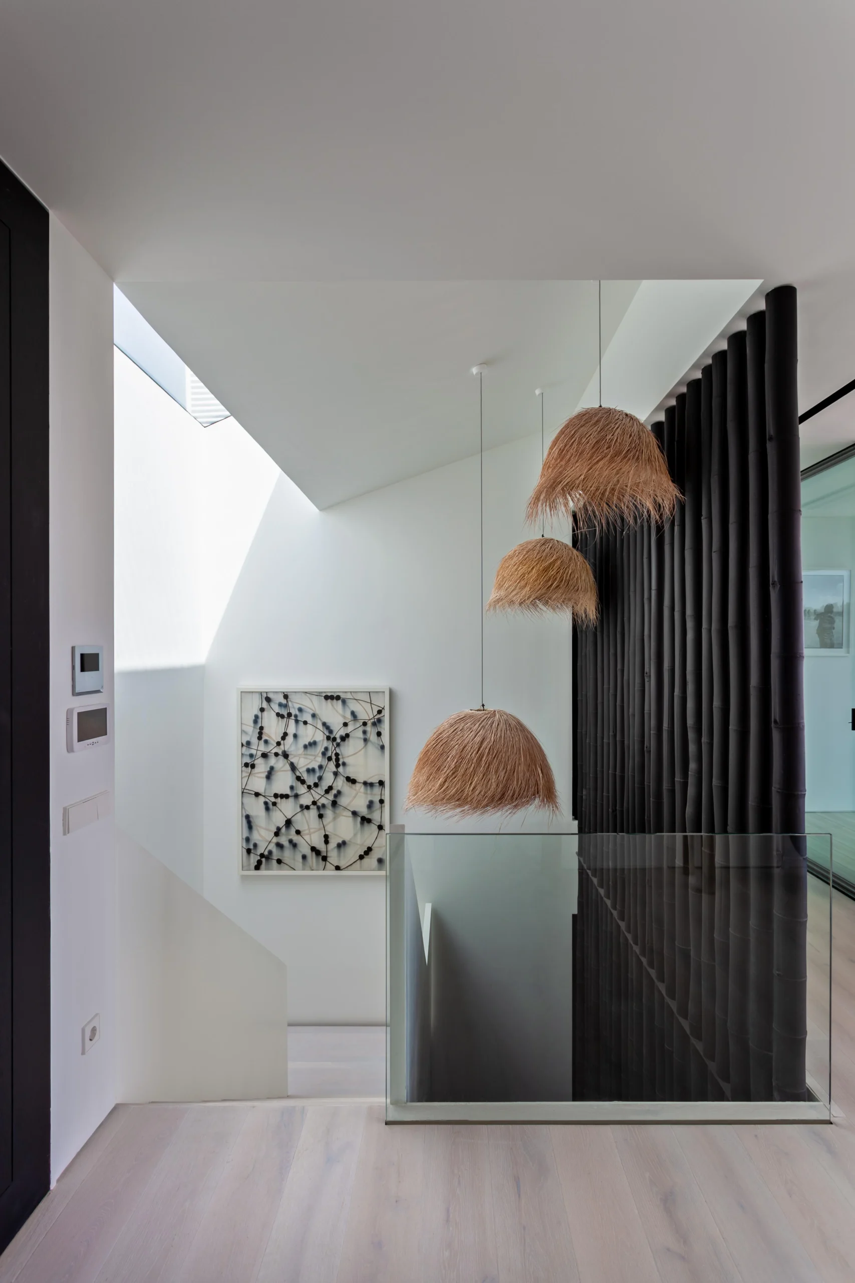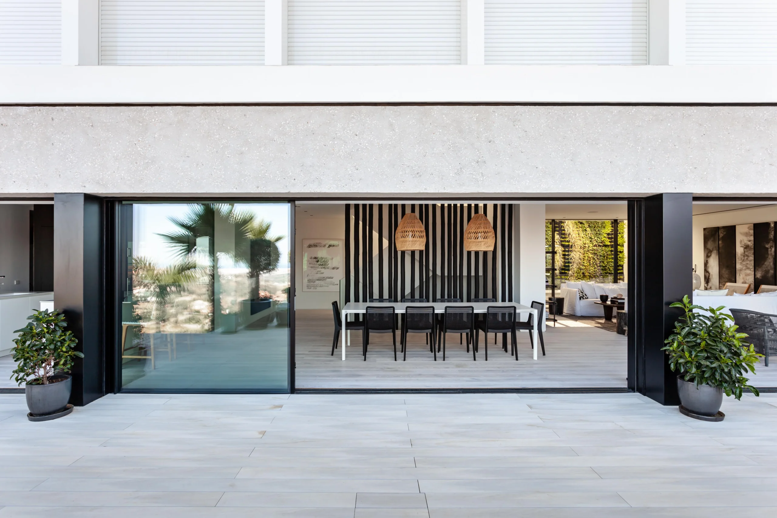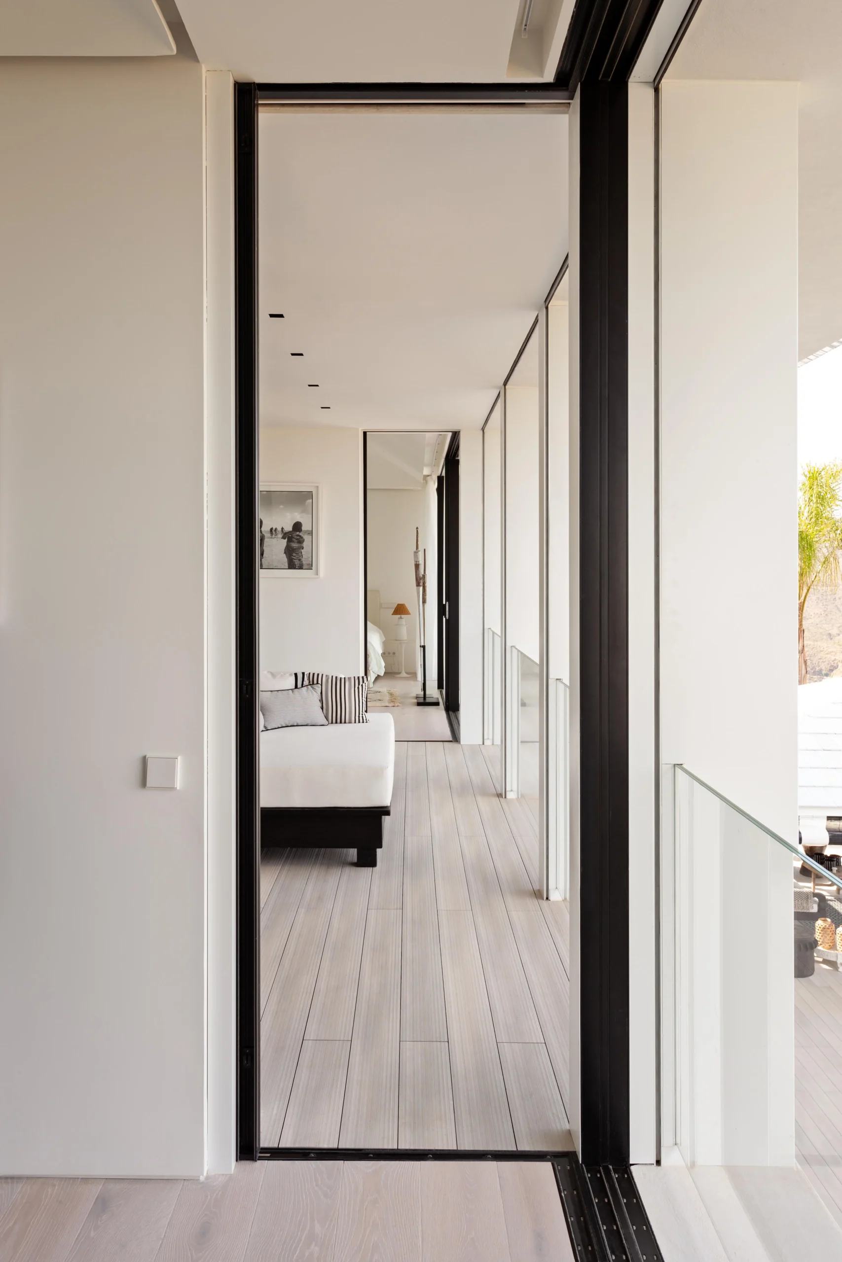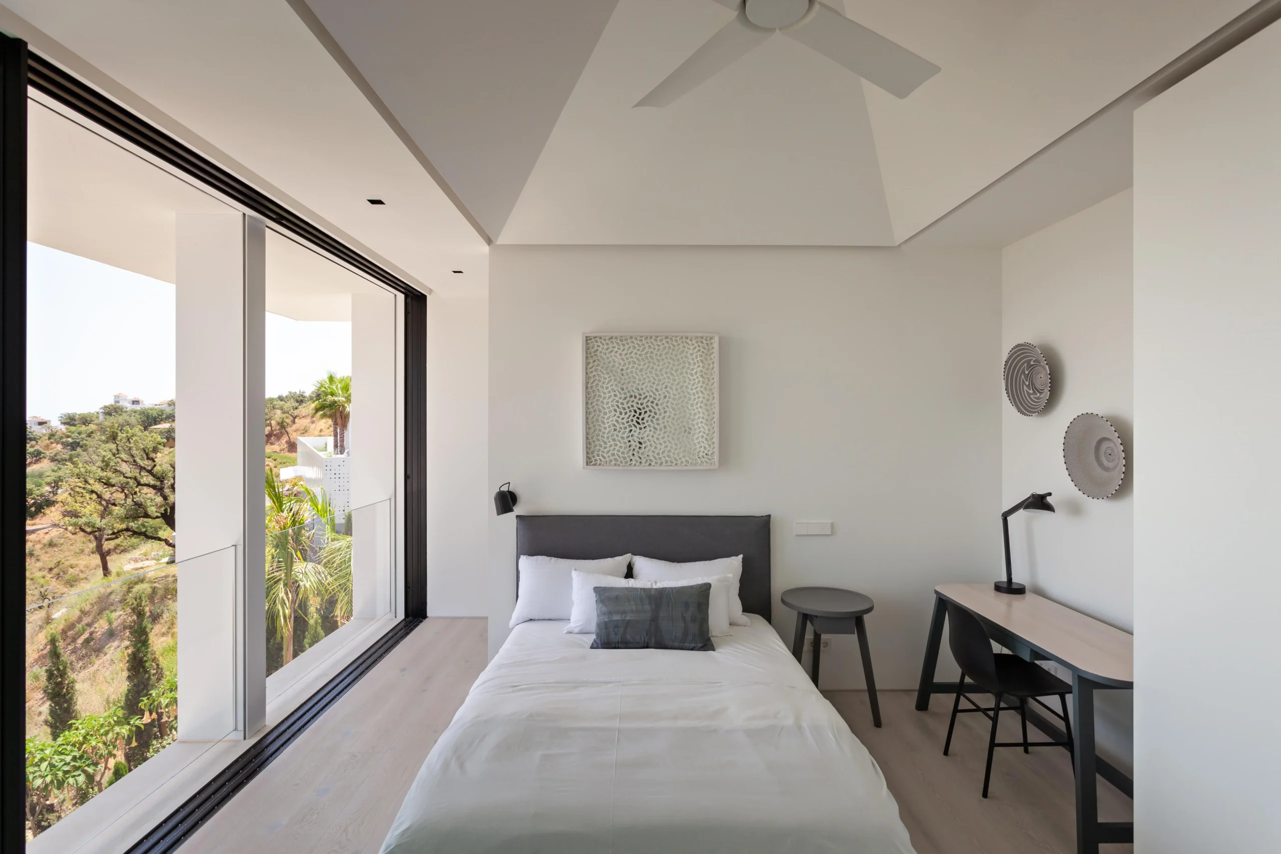 Marbella house is a residential development in the hills to the northwest of Marbella. Our proposal for Marbella house had to follow the steep incline of the land. The result is an upside down and back to front house: the main bedrooms are on the entrance floor with the large living and entertaining spaces on the floors below; and the front of the house is a mute blank wall, while the back of the house is a series of full width glass windows and doors overlooking the landscape.