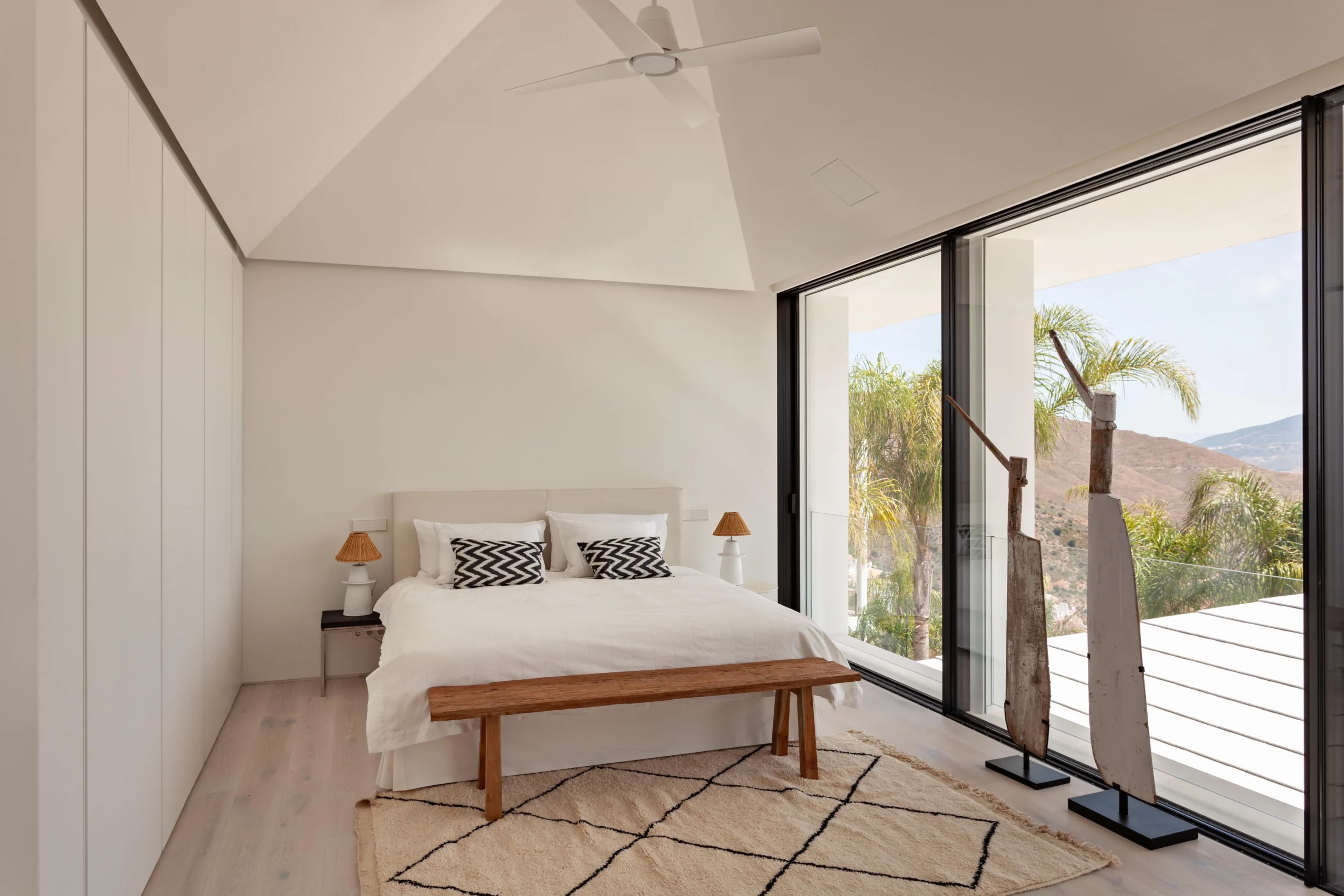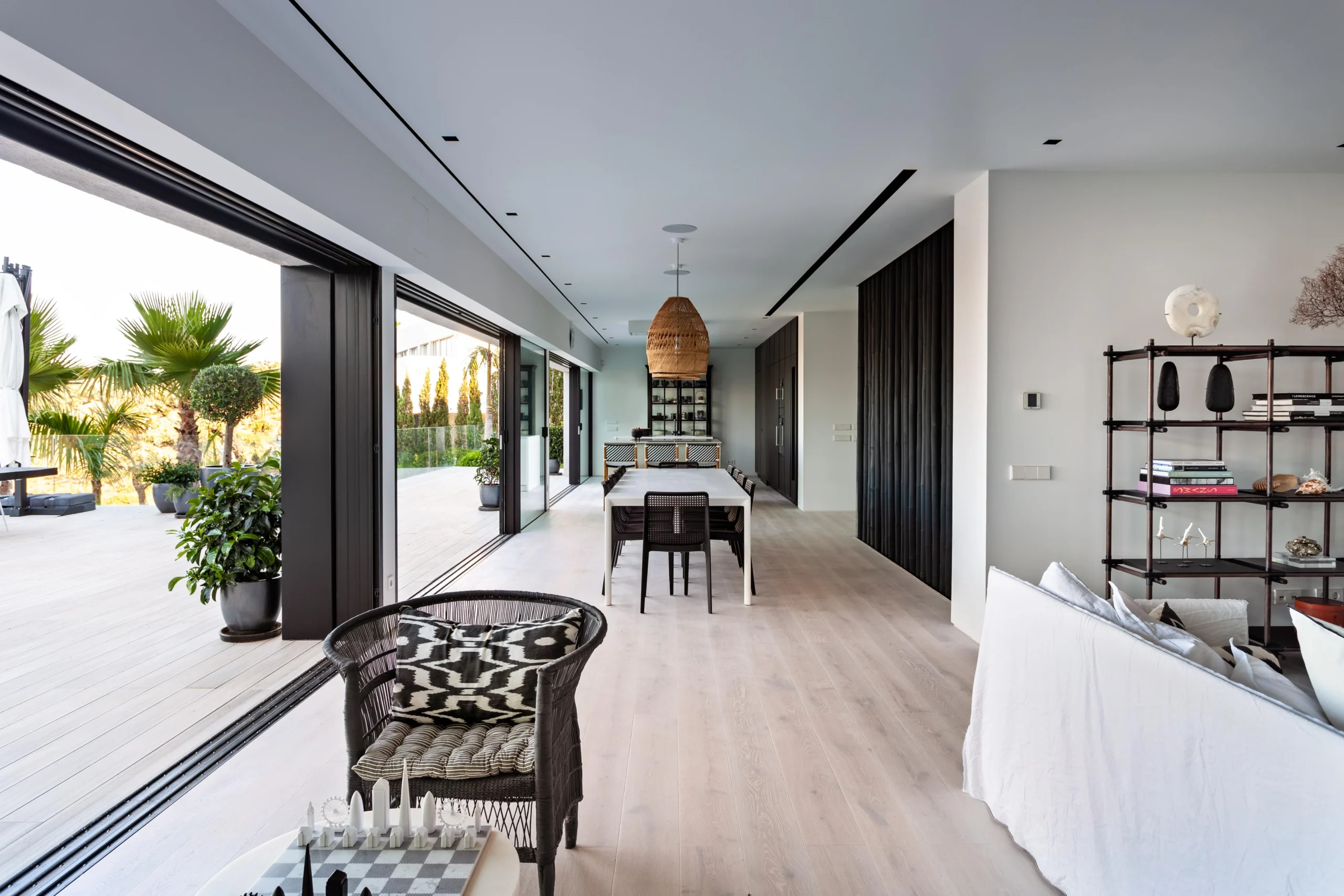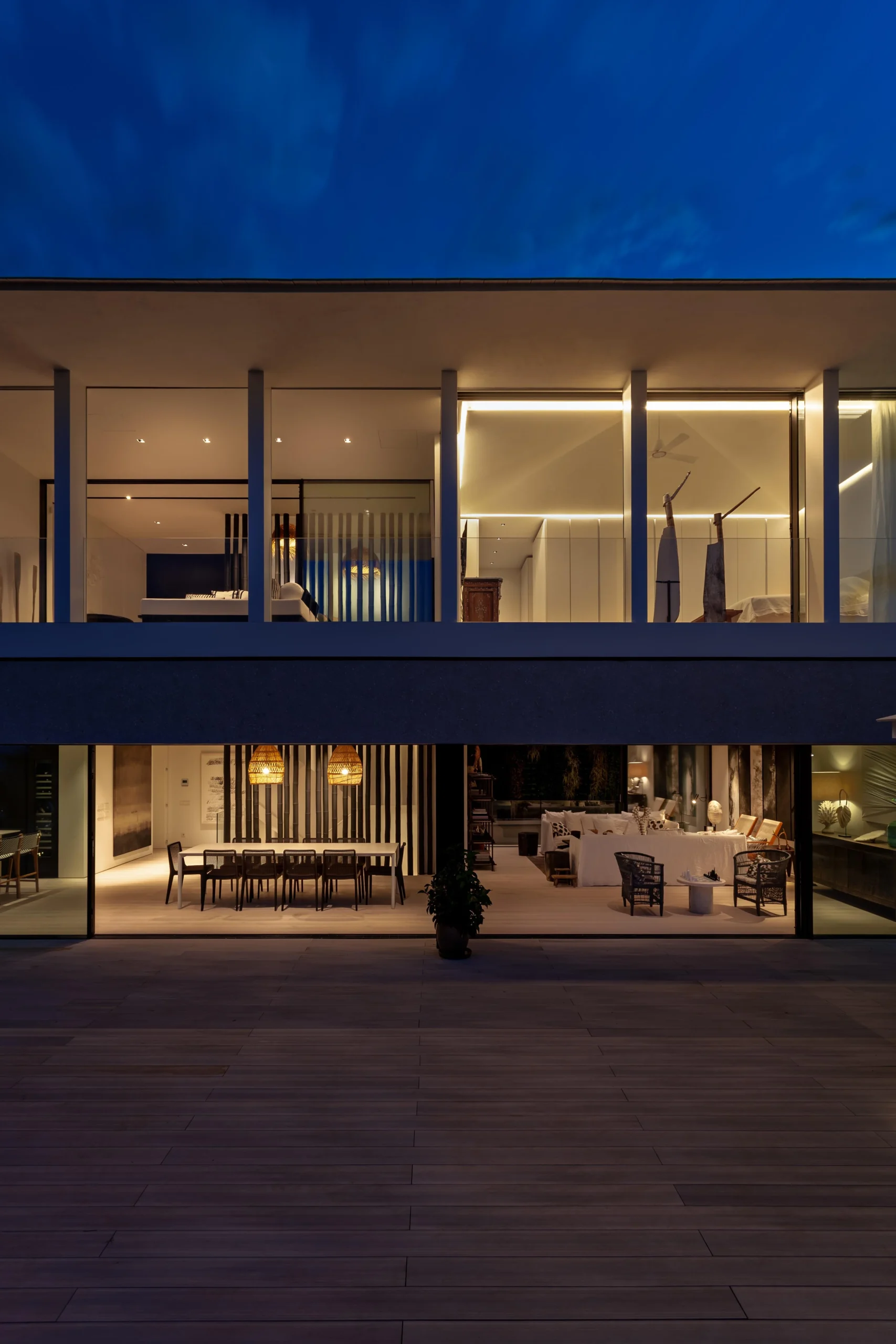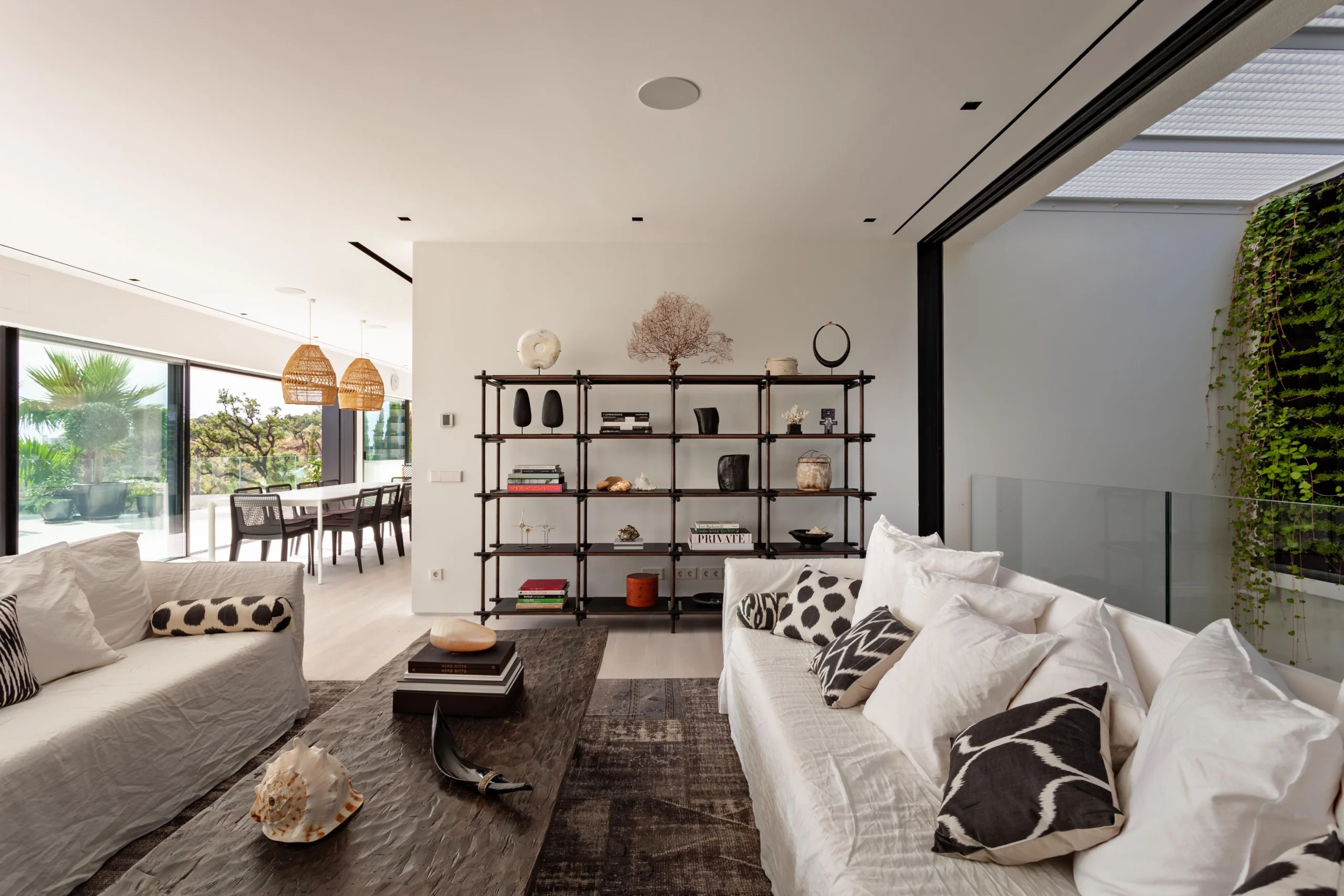 Marbella house is a residential development in the hills to the northwest of Marbella. Our proposal for Marbella house had to follow the steep incline of the land. The result is an upside down and back to front house: the main bedrooms are on the entrance floor with the large living and entertaining spaces on the floors below; and the front of the house is a mute blank wall, while the back of the house is a series of full width glass windows and doors overlooking the landscape.