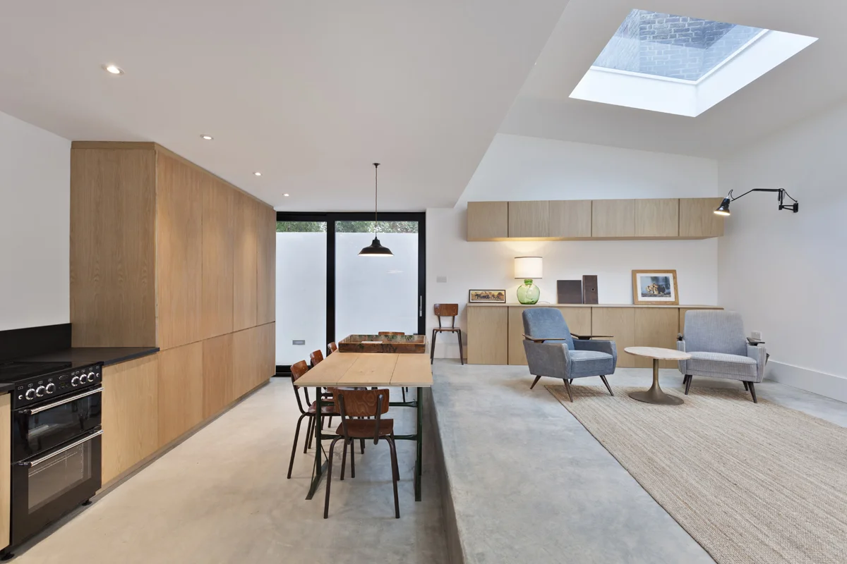 Rainham house is designed as a energy efficient home. Delicately dark brickwork. The development of a simple plan and section has delivered a house of exceptional quality. The views are composed and well-considered, the quality of light is superb and the sense of proportion results in a series of spaces that are inspiring.