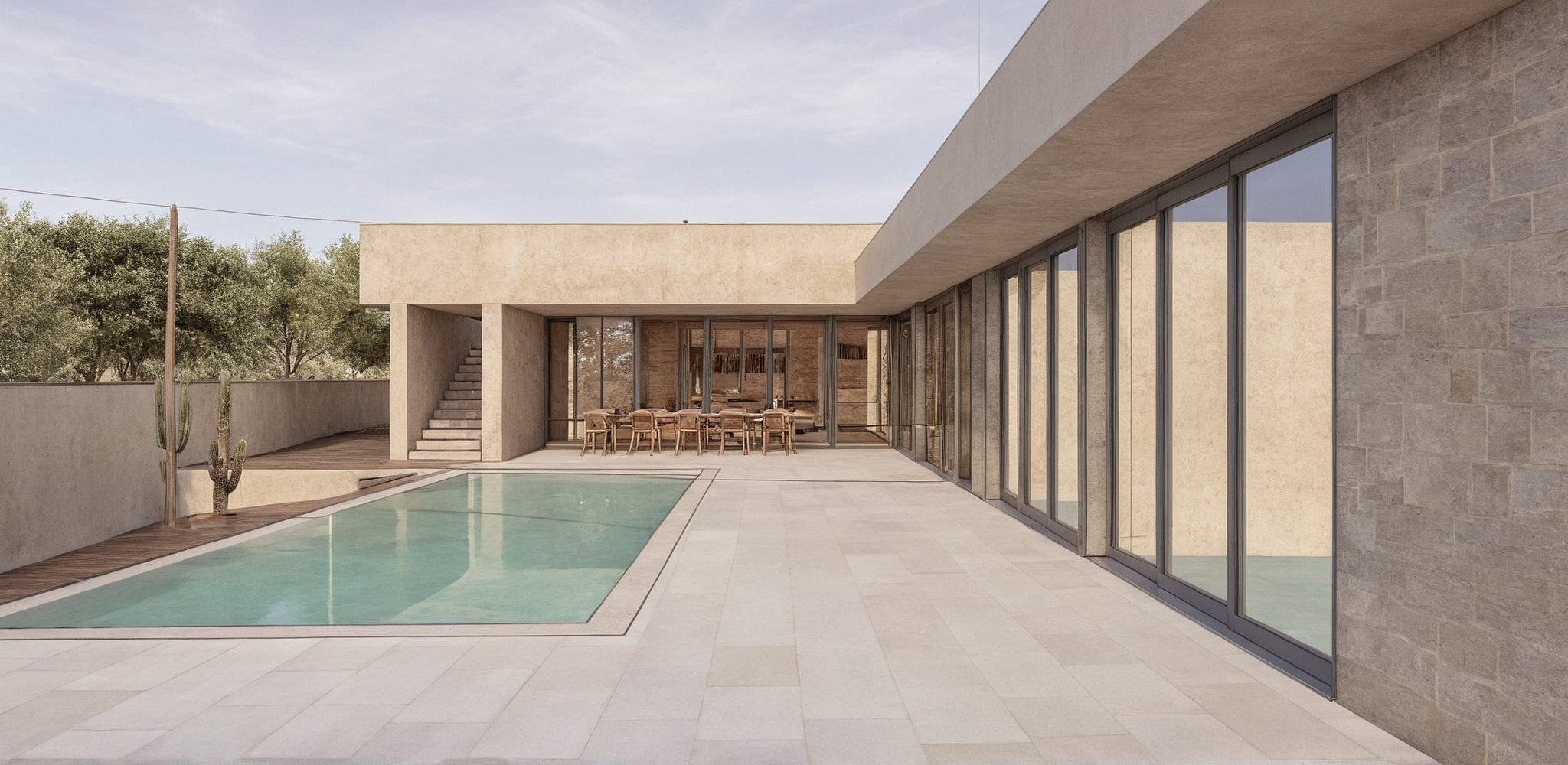 This minimalist villa features clean lines, natural materials, and panoramic views of the nature. With open living spaces, a serene infinity pool, and seamless indoor-outdoor flow, it offers pure tranquility in the heart of Mallorca